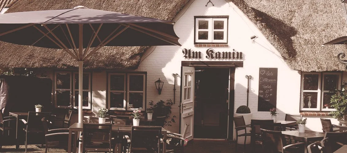 Das Restaurant “Am Kamin“ ist eines von vielen empfehlenswerten Restaurants in St. Peter Dorf. In einem der schönsten alten Reetdachhäuser erwartet Sie eine regionale Speisenauswahl mit gut zubereiteten Gerichten. Im Garten vor dem Haus kann man bei einem guten Espresso oder einem Glas Wein das Treiben auf der Dorfstrasse beobachten.